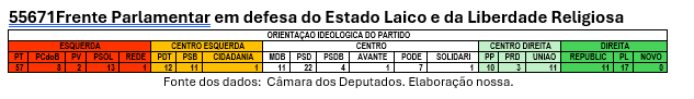 55671Frente Parlamentar em defesa do Estado Laico e da Liberdade ReligiosaESQUERDA
